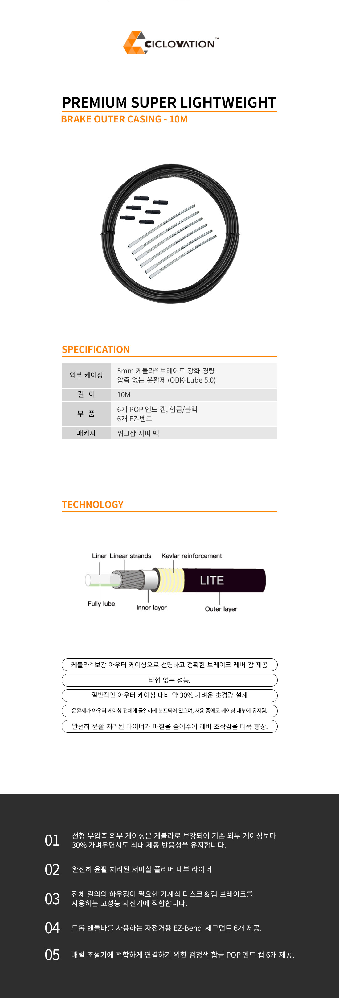 프리미엄 슈퍼 라이트웨이트-브레이크 아웃터 케이싱