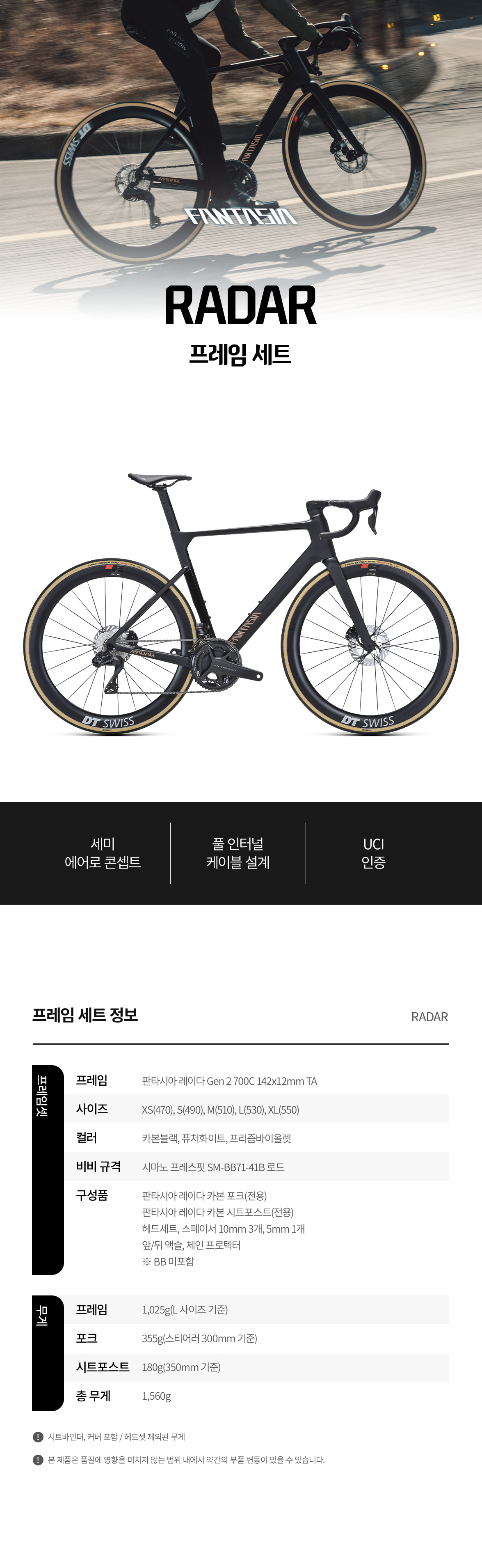 규격 XS(470), S(490), M(510), L(530), XL(550)